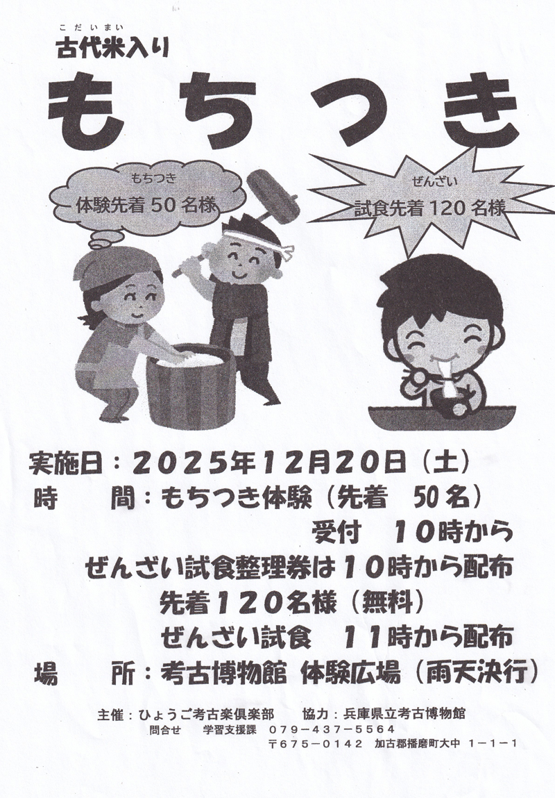 「ひょうご考古楽倶楽部の活動」は東播磨県民局「こころ豊かな美しい東播磨推進会議」の助成を受けています